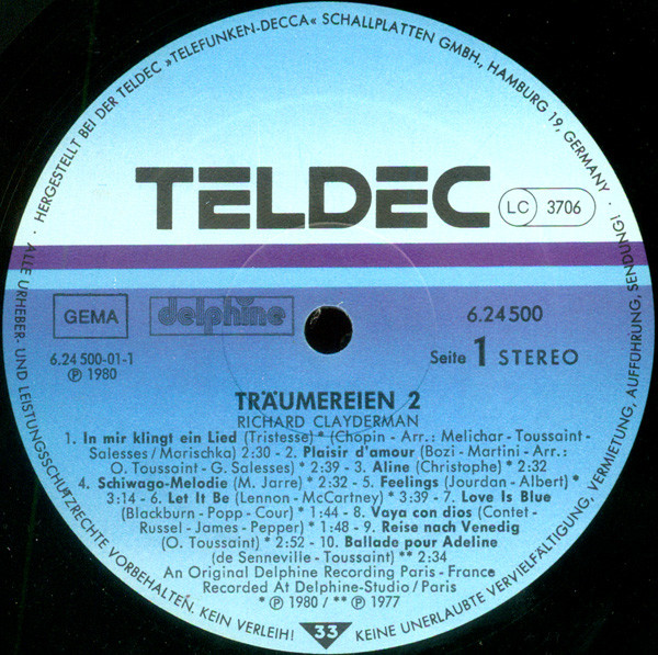 Richard Clayderman – Träumereien 2 (Die Schönsten Klaviermelodien) (LP, Album)