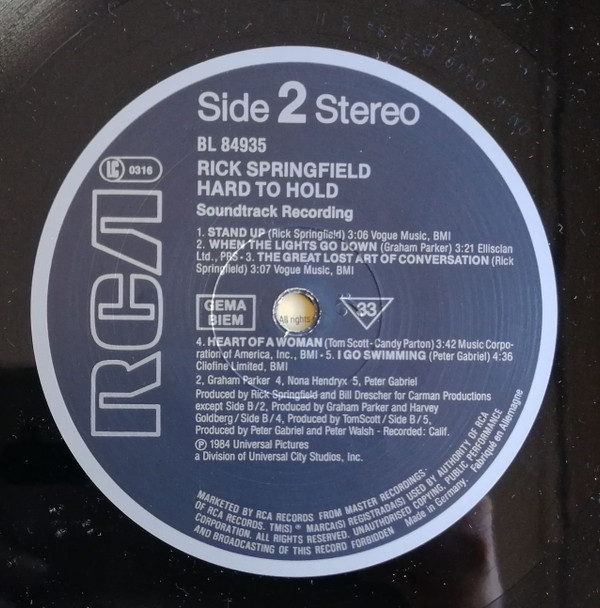 Rick Springfield – Hard To Hold – Soundtrack Recording (LP, Album)