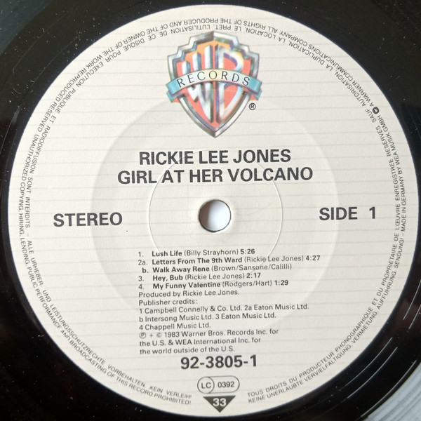 Rickie Lee Jones – Girl At Her Volcano (10″, Album, EP)