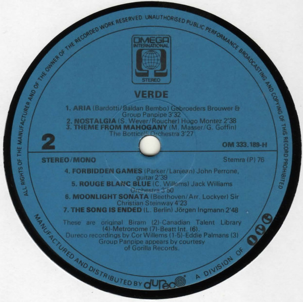 Ricky King – Verde (Romantic Instrumentals) (LP, Comp, Blu)