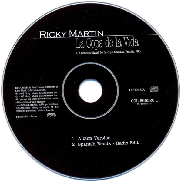 Ricky Martin – La Copa De La Vida (La Cancion Oficial De La Copa Mundial, Francia ’98) (CD, Single)