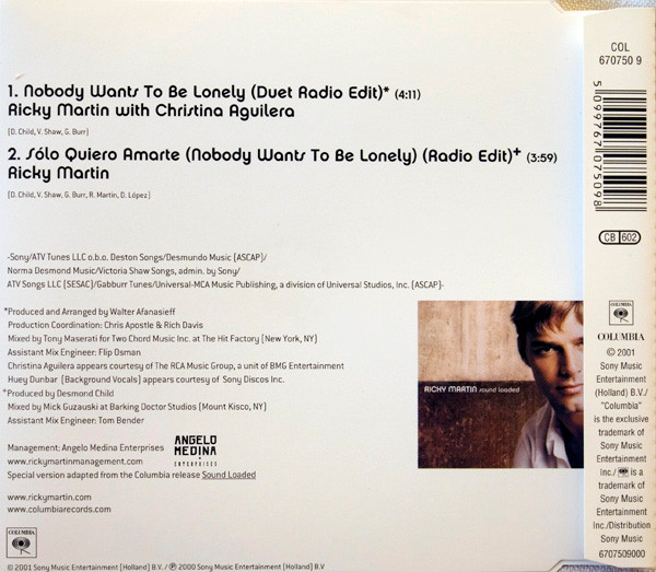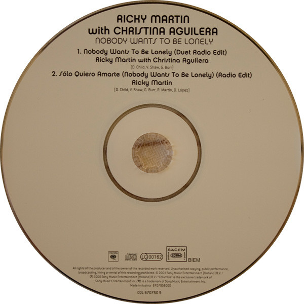 Ricky Martin With Christina Aguilera – Nobody Wants To Be Lonely (CD, Single)