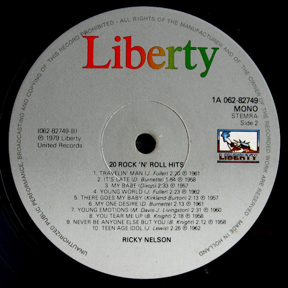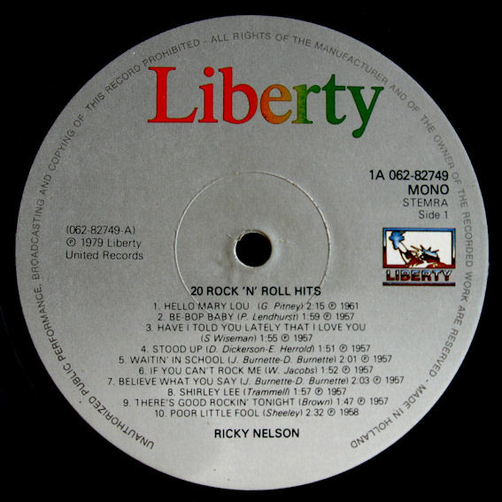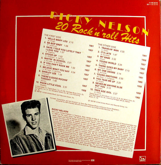 Ricky Nelson (2) – 20 Rock ‘N’ Roll Hits (LP, Comp, Mono, RE)