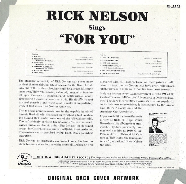 Ricky Nelson (2) – Rick Nelson Sings “For You” (CD, Album)