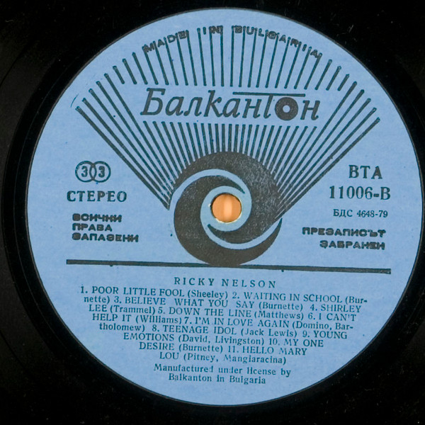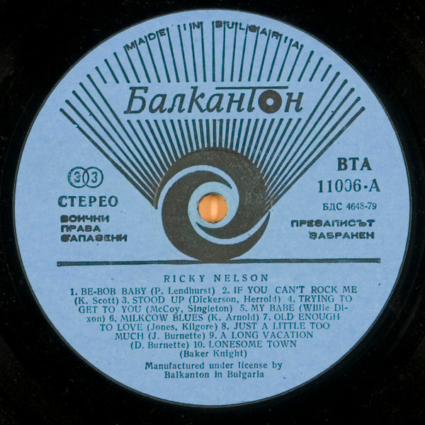 Ricky Nelson (2) – Ricky Nelson (LP, Comp, RP, Bla)