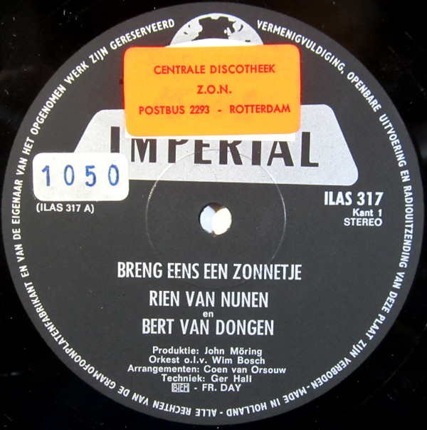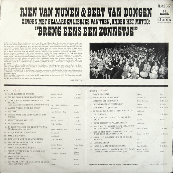 Rien van Nunen & Bert Van Dongen – Zingen Met Bejaarden Liedjes Van Toen, Onder Het Motto: “Breng Eens Een Zonnetje” (LP, Album)