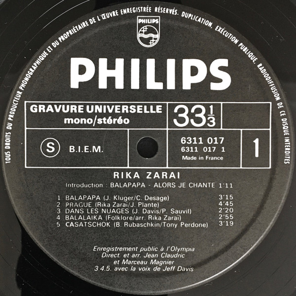 Rika Zaraï – Enregistrement Public A L’Olympia (LP, Album)