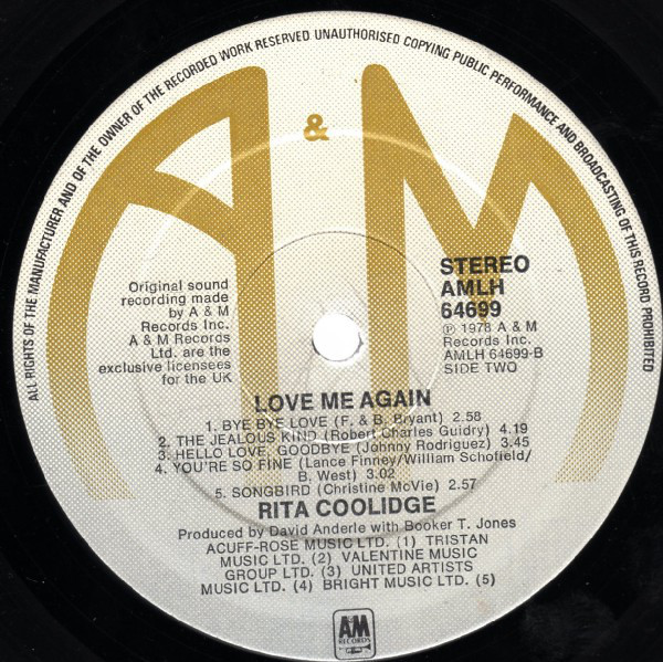 Rita Coolidge – Love Me Again (LP, Album, Gat)