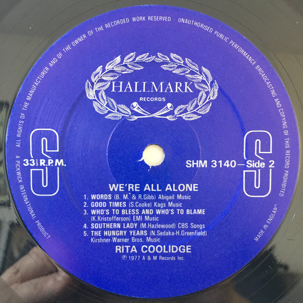 Rita Coolidge – We’re All Alone (LP, Album, RE)
