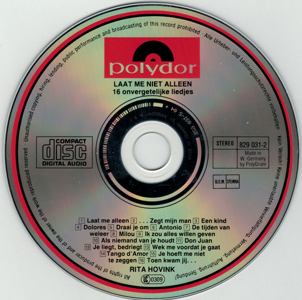 Rita Hovink – Laat Me Alleen 16 Onvergetelijke Liedjes (CD, Comp, RP)