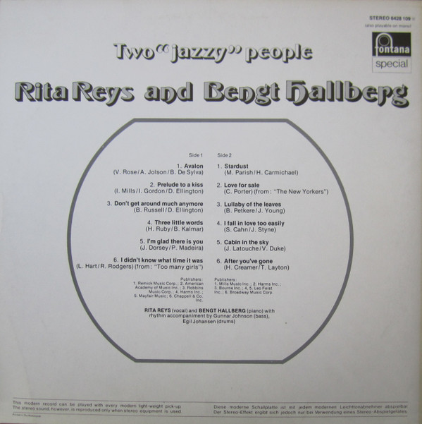 Rita Reys And Bengt Hallberg – Two “Jazzy” People (LP, Album, RE)