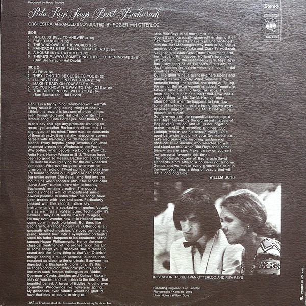 Rita Reys – Sings Burt Bacharach (LP, Album, Tex)