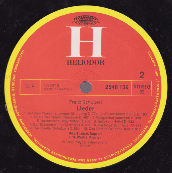 Rita Streich, Erik Werba, Heinrich Geuser – Schubert – Lieder (LP, Album)