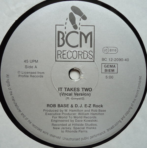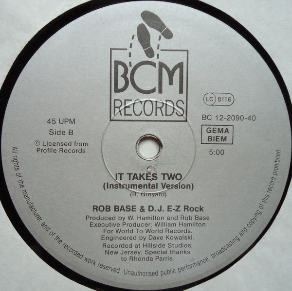 Rob Base & D.J. E-Z Rock* – It Takes Two (12″, RE)