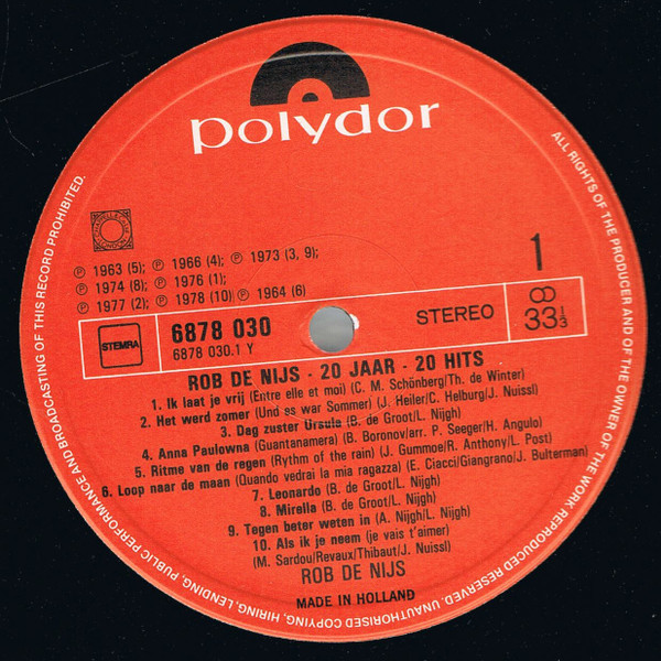 Rob de Nijs – 20 Jaar – 20 Hits (LP, Comp)