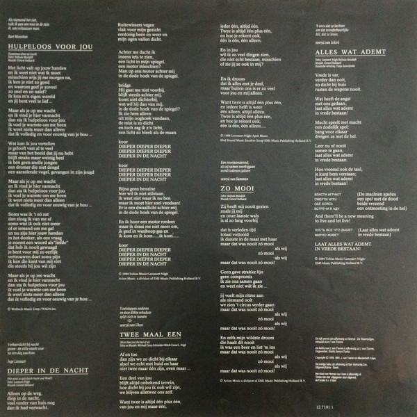 Opmerkingen: ORIGINAL INNER SLEEVE – INSERT INSIDE
