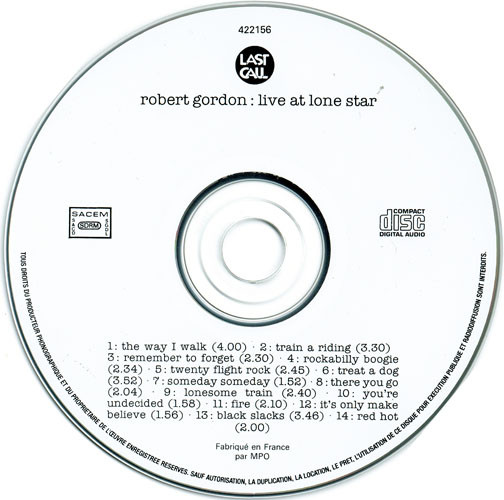 Robert Gordon (2) – Live At Lone Star (CD, Album, RE)