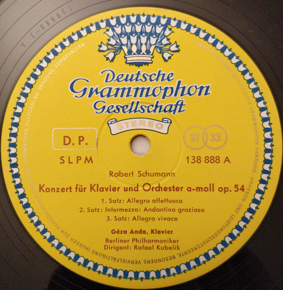 . Robert Schumann, Géza Anda, Berliner Philharmoniker, Rafael Kubelik – Konzert Für Klavier Und Orchester A-moll Op. 54