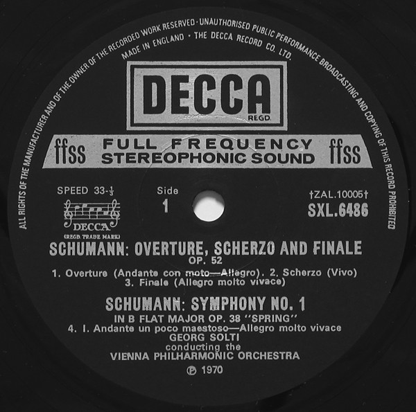 Robert Schumann, Wiener Philharmoniker ∙ Georg Solti – Symphony No.1 Op. 38 ‘Spring’ / Overture, Scherzo And Finale, Op. 52 (LP)