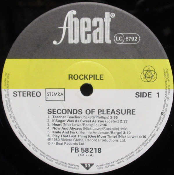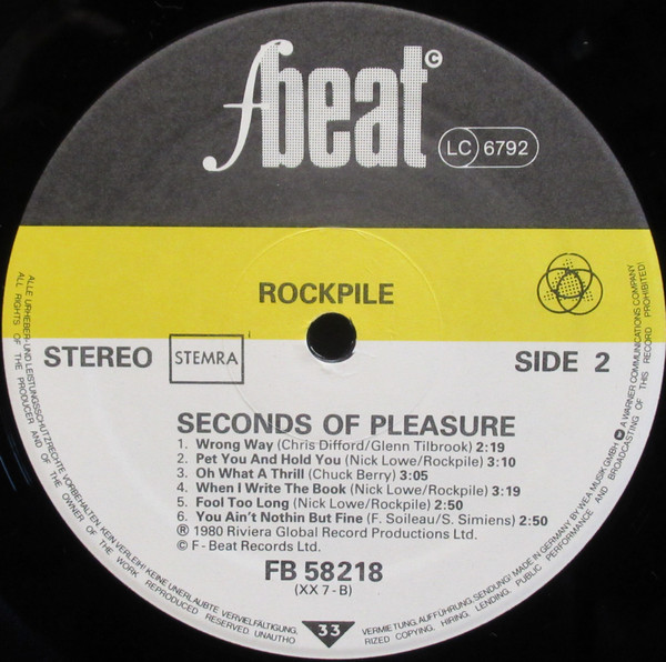 Rockpile – Seconds Of Pleasure (LP, Album, Gat)