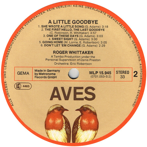 Roger Whittaker – A Little Goodbye (LP, Album)