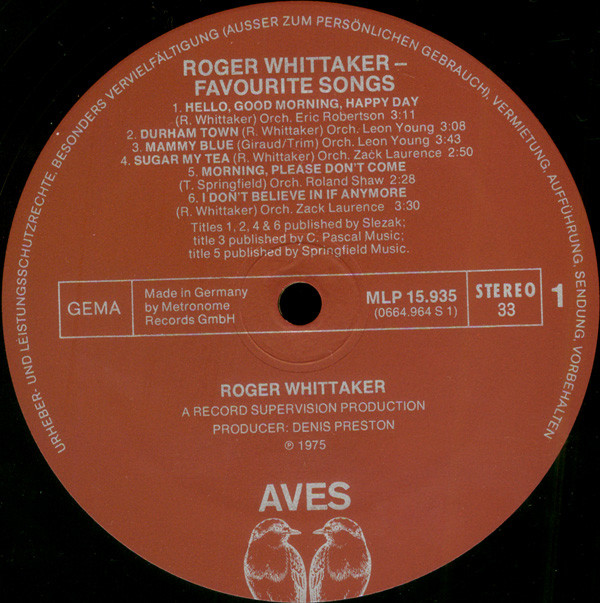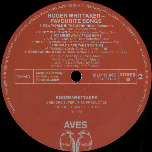 Roger Whittaker – My Favourite Songs (LP, Comp)