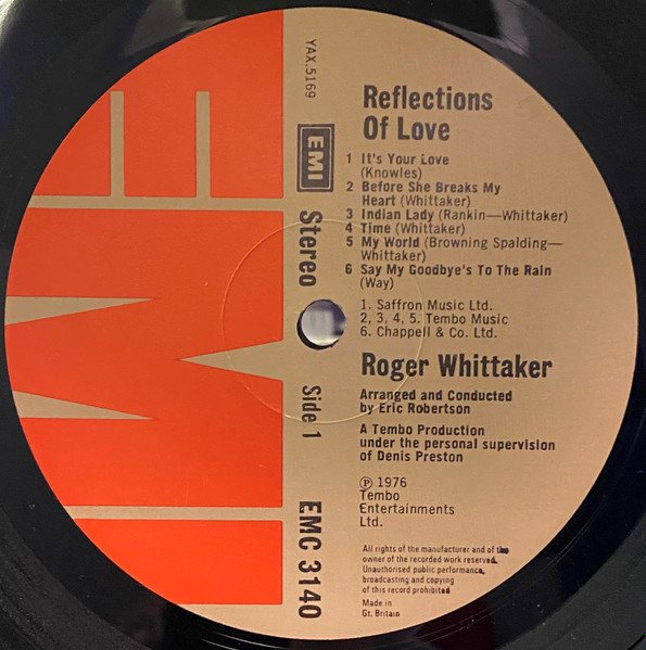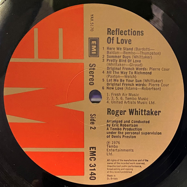 Roger Whittaker – Reflections Of Love (LP, Album, Tex)