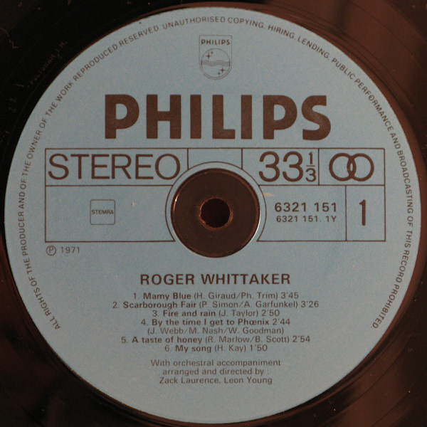 Roger Whittaker – Roger Whittaker (LP, Album, RE)