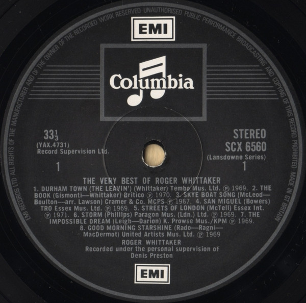 Roger Whittaker – The Very Best Of Roger Whittaker (LP, Comp)