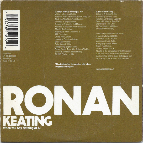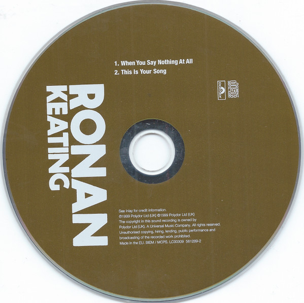 Ronan Keating – When You Say Nothing At All (CD, Single, Car)