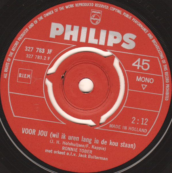 Ronnie Tober – Iedere Avond / Voor Jou (7″, Single, Mono, Red)