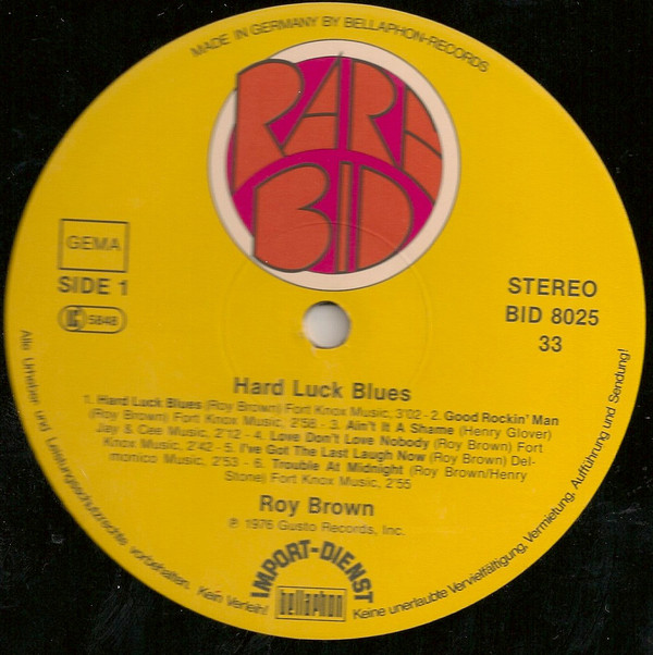 Roy Brown – Hard Luck Blues (LP, Comp)