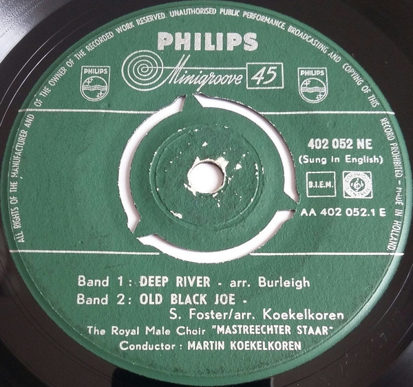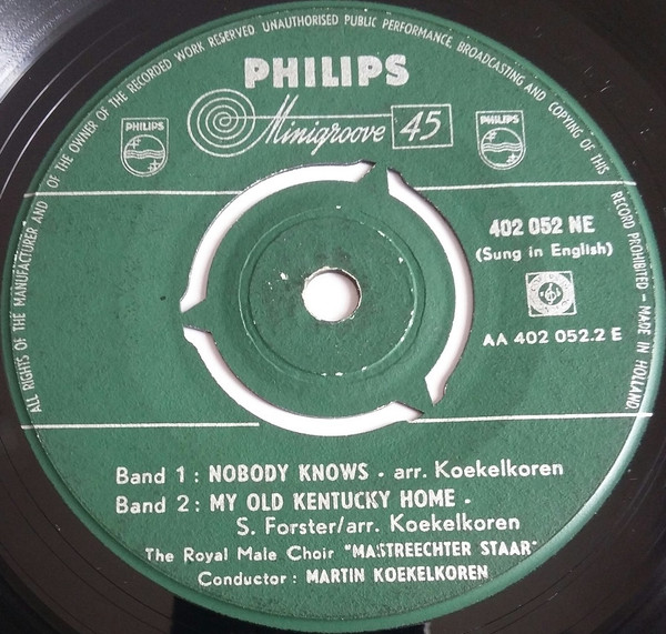 Royal Male Choir “Mastreechter Staar”* – Deep River / Old Black Joe / Nobody Knows / My Old Kentucky Home (7”, EP, Mono)