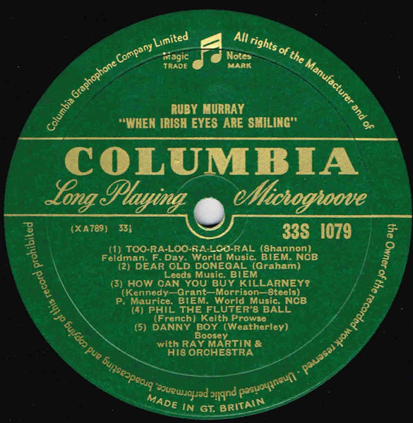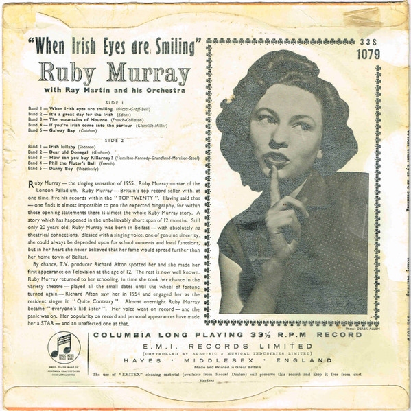 Ruby Murray With Ray Martin And His Orchestra – When Irish Eyes Are Smiling (10″, Mono, RP)