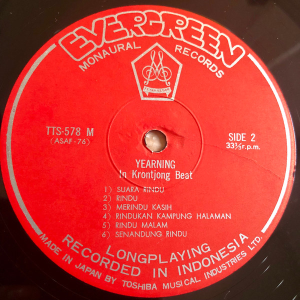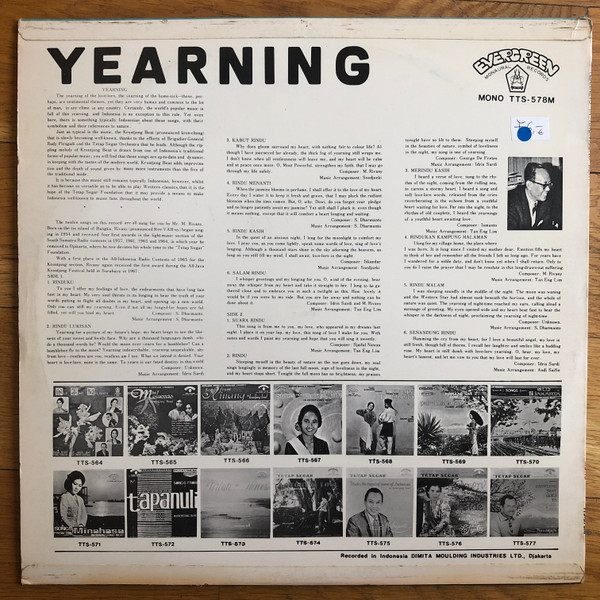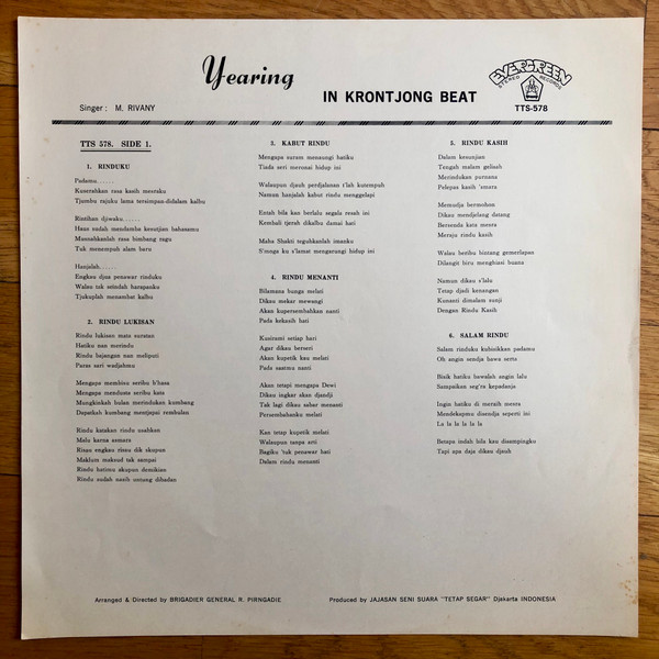 Rudi Pirngadi And His Tetap Segar Orchestra And Chorus featuring M. Rivany – Presents Yearning in Krontjong Beat (LP, Album, Mono)