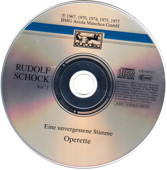 Rudolf Schock – Eine Unvergessene Stimme Vol. 2: Operette (CD, Comp)