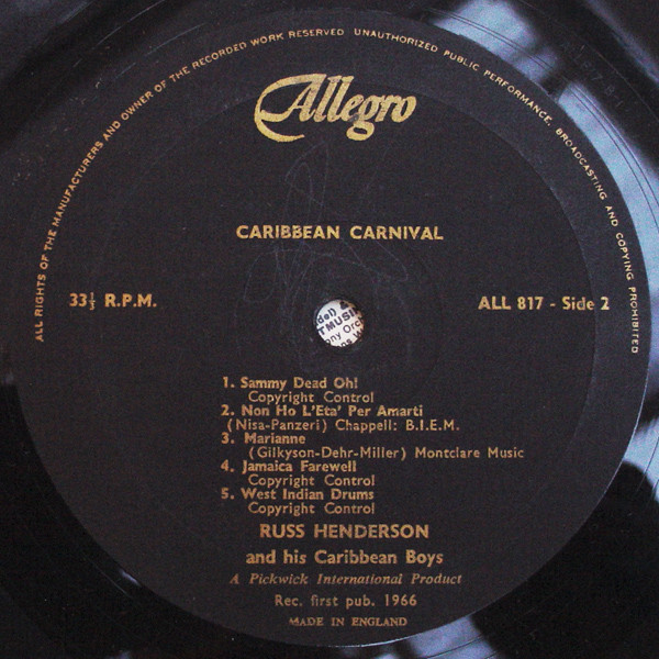 Russ Henderson And His Caribbean Boys – Caribbean Carnival (LP, Album)