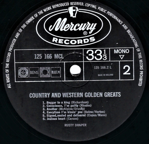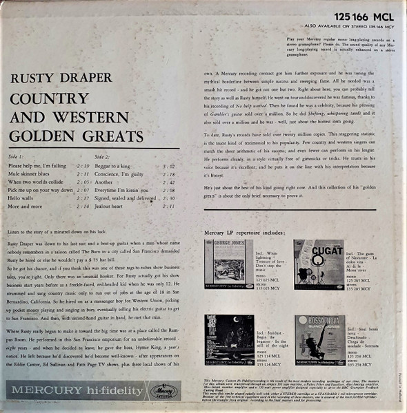 Rusty Draper – Country & Western Golden Greats (LP, Album, Mono)