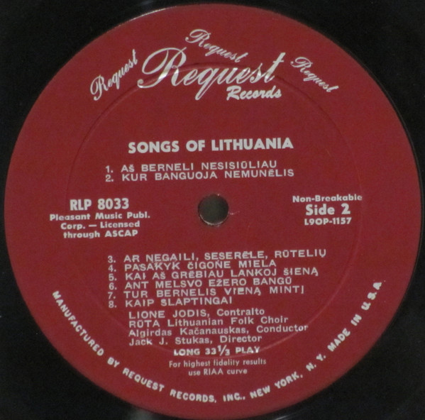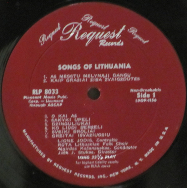 Rūta Lietuvių Tautinis Meno Ansamblis*, Lione Jodis* – Dainos Iš Lietuvos = Songs Of Lithuania (LP, Album, Mono)