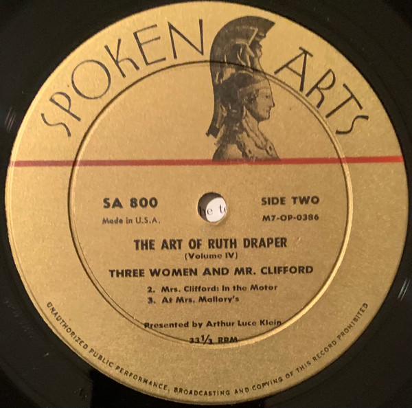 Ruth Draper – The Art Of Ruth Draper Vol. IV (Three Women And Mr. Clifford) (LP, Album)