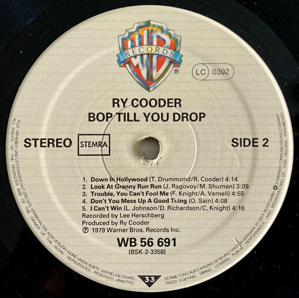 Ry Cooder – Bop Till You Drop (LP, Album, Pfa)