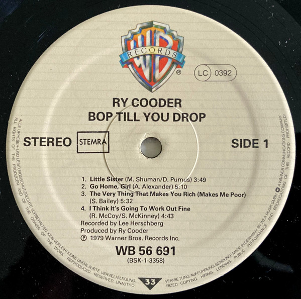 Ry Cooder – Bop Till You Drop (LP, Album, Pfa)