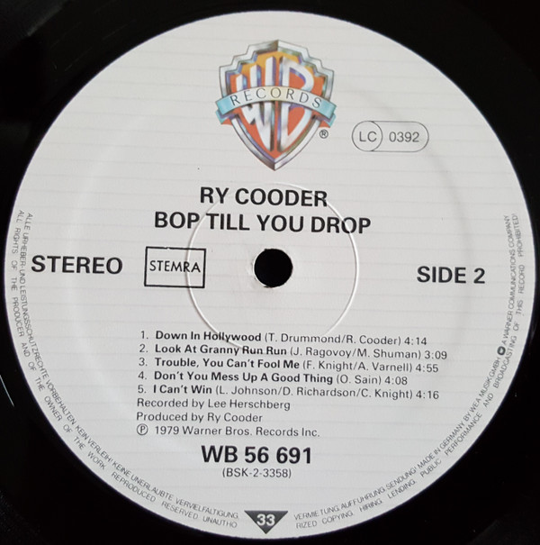 Ry Cooder – Bop Till You Drop (LP, Album, RE, Als)