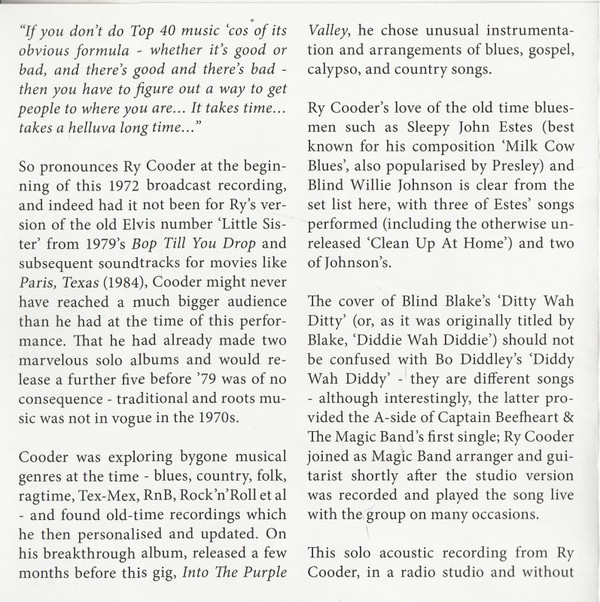 Ry Cooder – Ditty Wah Ditty · Live In Cleveland 1972 (CD, Unofficial)