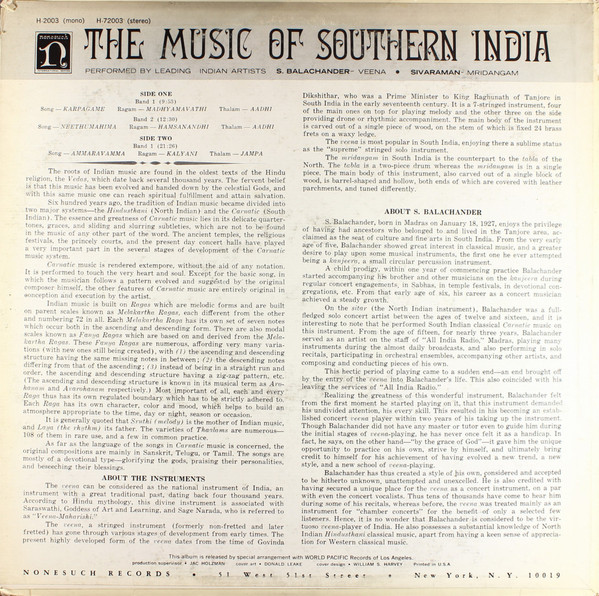 S. Balachander*, Sivaraman* – The Music Of India (LP, Mono)