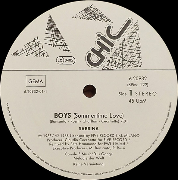 Sabrina – Boys (Summertime Love) (Re-Mix By Pete Hammond) (12″)