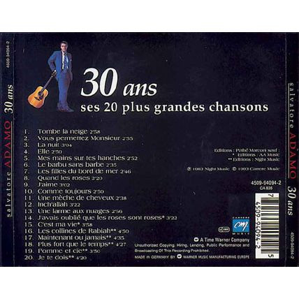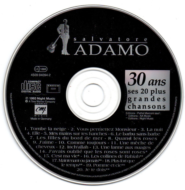 Salvatore Adamo* – 30 Ans – Ses 20 Plus Grandes Chansons (CD, Comp)