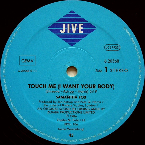 Samantha Fox – Touch Me (I Want Your Body) (12″, Maxi)