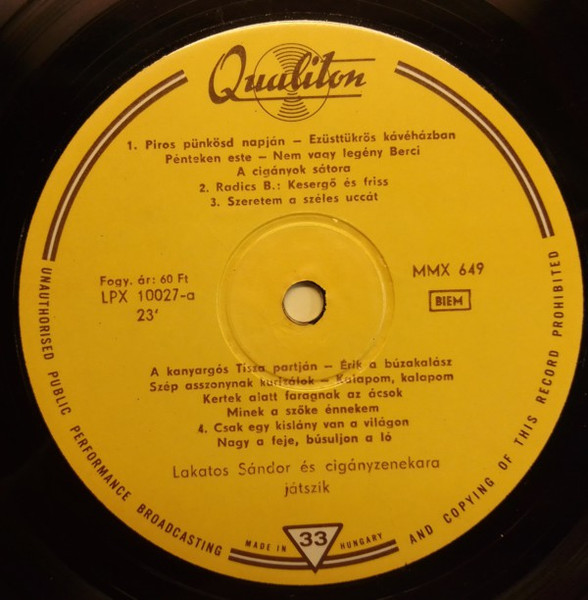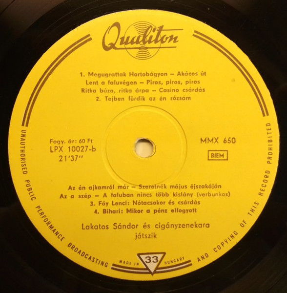 Sándor Lakatos And His Gipsy Band – Famous Hungarian Folk Songs (LP)
