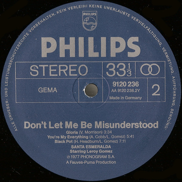 Santa Esmeralda Starring Leroy Gomez – Don’t Let Me Be Misunderstood (LP, Album, Pap)